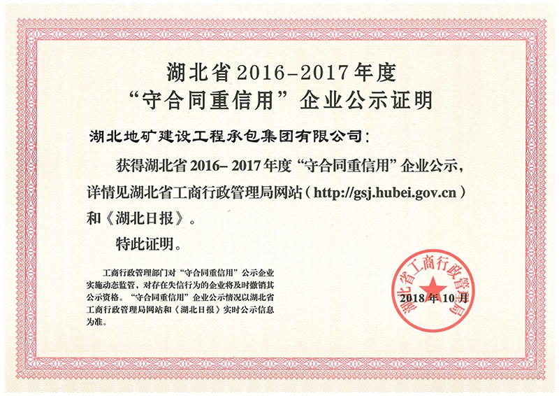 2017年武漢地區(qū)建筑業(yè)企業(yè)信用等級證書3A