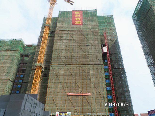 2013年8月31日上午8時(shí)18分,由湖北地礦建設(shè)工程承包集團(tuán)有限公司承建的江陵玉帶園小區(qū)施工現(xiàn)場禮花綻放、鞭炮齊鳴,歡慶4#樓主體結(jié)構(gòu)順利封頂。湖北偉業(yè)房地產(chǎn)開發(fā)有限公司、湖北楚元工程建設(shè)咨詢有限公司及項(xiàng)目部代表參加了封頂儀式。