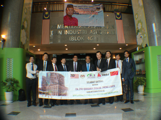 12月12日下午,應(yīng)馬來西亞農(nóng)業(yè)和農(nóng)基部副部長拿督達(dá)祖丁的邀請,考察團(tuán)一行前往位于布城的馬來西亞農(nóng)業(yè)和農(nóng)基部總部進(jìn)行了考察拜訪和會談。拿督達(dá)祖丁首先對考察團(tuán)的到來表示熱烈地歡迎,隨后介紹了農(nóng)業(yè)和農(nóng)基部的職能以及雙方未來能夠合作的領(lǐng)域。鄒泉華處長和程立文總經(jīng)理首先對副部長的邀請表示了衷心的感謝,然后介紹了湖北地礦局和地建集團(tuán)的發(fā)展歷程和優(yōu)勢行業(yè),隨后對在馬投資的藍(lán)圖經(jīng)行了描繪。雙方在友好的氣氛中就有關(guān)在馬投資發(fā)展的問題深入交換了意見,達(dá)成了就公司投資土地購買、農(nóng)業(yè)基礎(chǔ)設(shè)施建設(shè)、農(nóng)業(yè)地質(zhì)技術(shù)服務(wù)、礦產(chǎn)資源開發(fā)等多個事項的共識,為省地礦局、地建集團(tuán)在馬來西來獲得更好的發(fā)展奠定了基礎(chǔ)。會談結(jié)束后,副部長帶領(lǐng)考察團(tuán)參觀了農(nóng)業(yè)和農(nóng)基部農(nóng)產(chǎn)品發(fā)展展示中心。