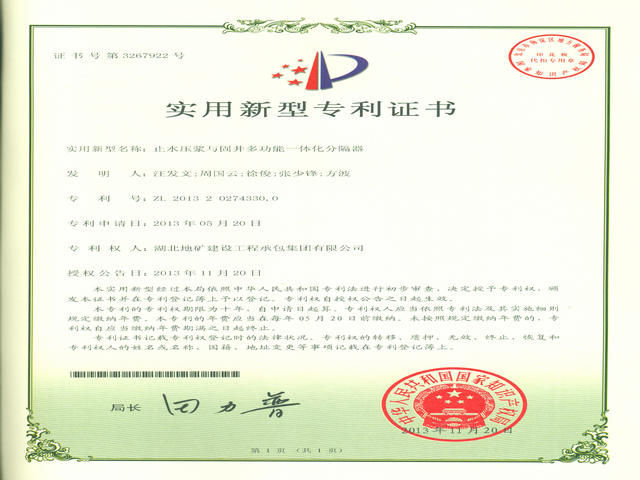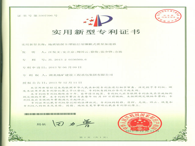 近日獲悉,地勘部獲批兩項國家實用新型專利,即《止水壓降與固井多功能一體化分隔器》(專利號:201320274330.0)、《地質(zhì)鉆探卡埋鉆打吊錘橫式質(zhì)量加速器》(專利號:201320336569.6)。