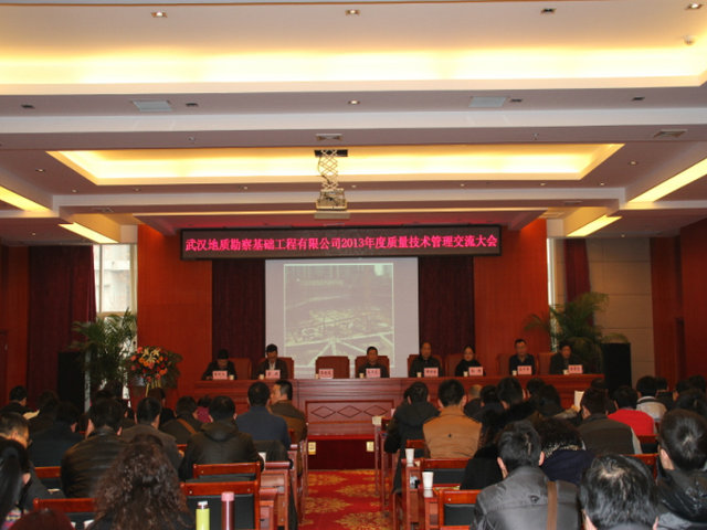 2014年1月8日,武基公司召開了2013年度質(zhì)量技術(shù)管理交流大會(huì)。武漢市建筑工程質(zhì)量監(jiān)督站總工程師鄭祥斌,武漢市深基坑專家委員會(huì)成員向艷,中國地質(zhì)大學(xué)(武漢)勘察與基礎(chǔ)工程系書記、博士后導(dǎo)師竇斌教授,武漢沿海地產(chǎn)總經(jīng)理李曉龍等專家以及公司領(lǐng)導(dǎo)班子成員、公司各部門工作人員、各工程處技術(shù)管理人員等80多人參加了會(huì)議。