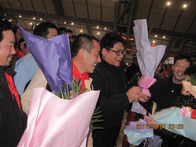 列車準(zhǔn)時進(jìn)站,106名佩戴紅領(lǐng)巾的勞務(wù)人員平安抵達(dá),歡迎人員敬獻(xiàn)了鮮花,地建集團領(lǐng)導(dǎo)向他們詳細(xì)詢問了撤離情況,對員工的安全歸來表示熱烈的歡迎,并一一握手問候。長江日報、楚天都市報、湖北經(jīng)視直播、我愛武漢等新聞媒體也早早的來到了現(xiàn)場,用相機、攝影機記錄下了這一動人的場景,并在第一時間報道,工人朋友對在場的領(lǐng)導(dǎo)表示最誠摯的感謝,并齊聲高呼“感謝祖國,祖國萬歲”。