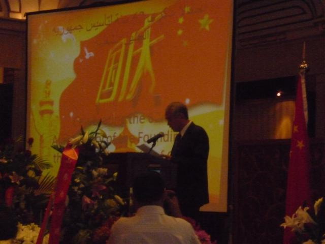 會(huì)上,王勇總領(lǐng)事和沙特阿拉伯王國(guó)外交部麥加地區(qū)分部總司長(zhǎng)穆罕默德分別致辭。王總領(lǐng)事高度評(píng)價(jià)了中沙友好合作關(guān)系,感謝沙方多年來對(duì)我方的支持,祝愿中沙雙邊各領(lǐng)域的合作關(guān)系不斷深入發(fā)展。穆罕默德總司長(zhǎng)代表沙特政府熱烈祝賀我國(guó)慶,高度贊揚(yáng)我建國(guó)62年來經(jīng)濟(jì)建設(shè)取得的巨大成就,感謝中國(guó)一貫支持阿拉伯人民正義事業(yè)的立場(chǎng),祝愿中國(guó)繁榮昌盛。
