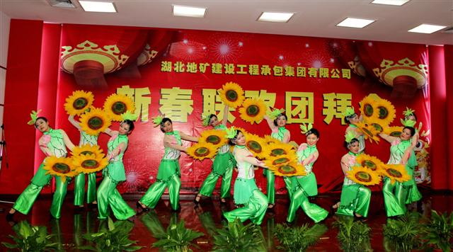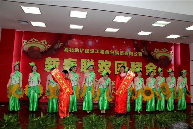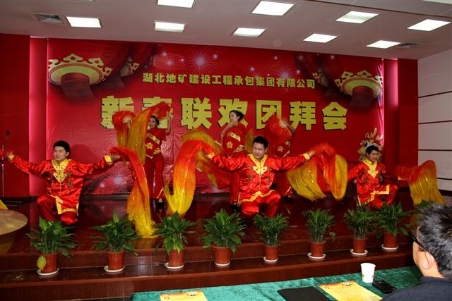團(tuán)拜會上,來自公司機(jī)關(guān)、公司直屬項目部及基地的干部職工用精彩的合唱、舞蹈、小品、男女對唱、音樂劇、歌舞等節(jié)目,表達(dá)了對公司繁榮昌盛的衷心祝福和“二次創(chuàng)業(yè)”再創(chuàng)輝煌的堅定信念。會場氣氛熱烈,掌聲不斷,高潮迭起。