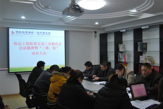 會議傳達(dá)了院五屆三次職代會精神,認(rèn)真組織學(xué)習(xí)了院長程立文所作的《凝神聚力,開拓創(chuàng)新,推動工程院發(fā)展再上新臺階》工作報告和在開展“三抓一促”活動動員大會上的講話,就工程院“做強(qiáng)做穩(wěn)海外事業(yè)作為富院之策”的“走出去”戰(zhàn)略進(jìn)行了重點詮釋。