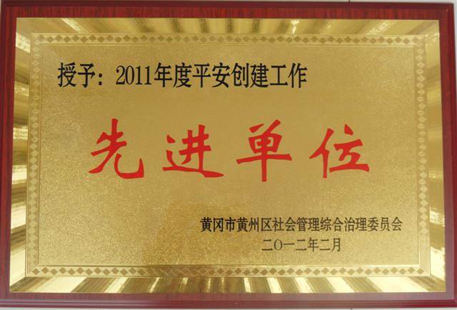 黃岡基地被評(píng)為黃岡市黃州區(qū)2011年度平安創(chuàng)建工作先進(jìn)單位
