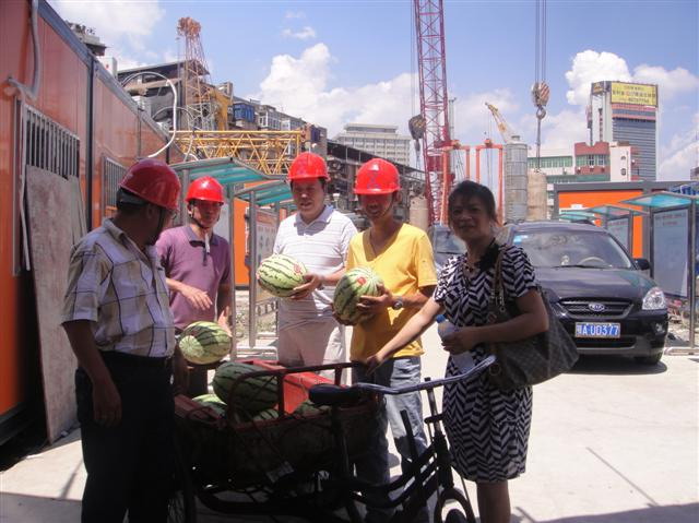 一份清涼,一份關(guān)懷。公司防暑降溫工作組冒著炎炎烈日將購(gòu)買的綠豆和西瓜送往各在建施工項(xiàng)目工地,將公司的關(guān)心和清涼及時(shí)傳遞到施工一線員工。該活動(dòng)極大的鼓舞了公司一線員工的士氣,也為夏季安全生產(chǎn)營(yíng)造了“和諧安康”的良好氛圍。