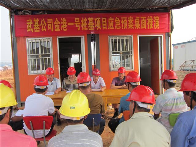 8月16日上午,公司安全生產(chǎn)部組織金港一號花園小區(qū)鉆孔灌注樁工程項(xiàng)目部相關(guān)人員開展了一次應(yīng)急預(yù)案演練活動?;顒咏M織學(xué)習(xí)了項(xiàng)目部制定的溶洞垮塌、高溫中暑、雷暴天氣、觸電等專項(xiàng)應(yīng)急預(yù)案,并進(jìn)行了桌面推演和溶洞垮塌救援的實(shí)戰(zhàn)演練。