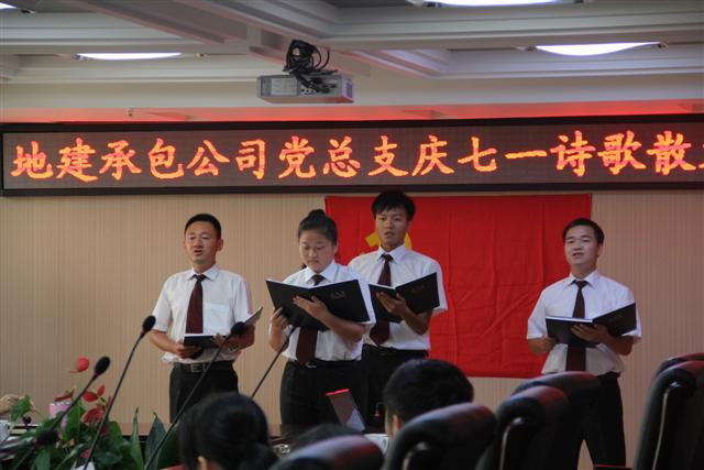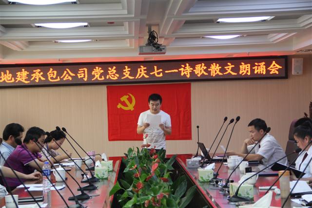 為了慶祝建黨91周年,地建承包公司黨總支于6月29日下午在公司13樓會(huì)議室成功舉行了“迎七一”詩歌散文朗誦會(huì)。院黨委委員、副院長史立京和地建承包公司50余名機(jī)關(guān)工作人員、黨員參加了朗誦會(huì)。