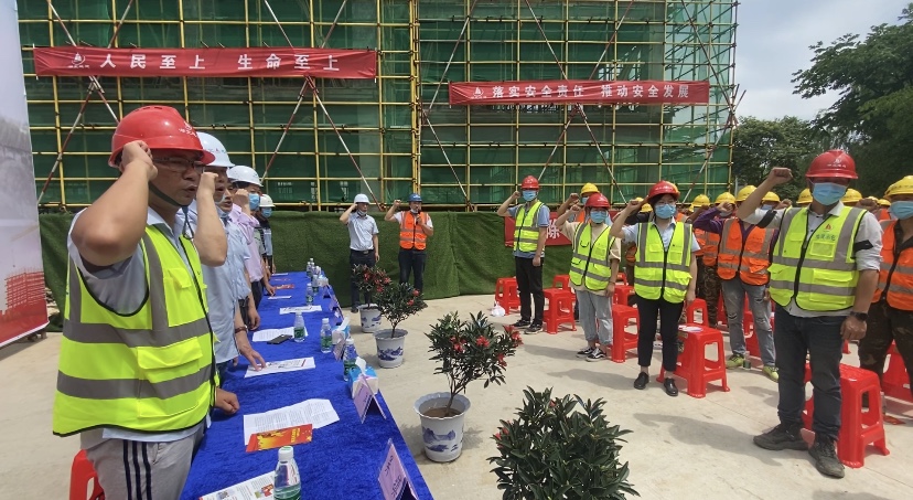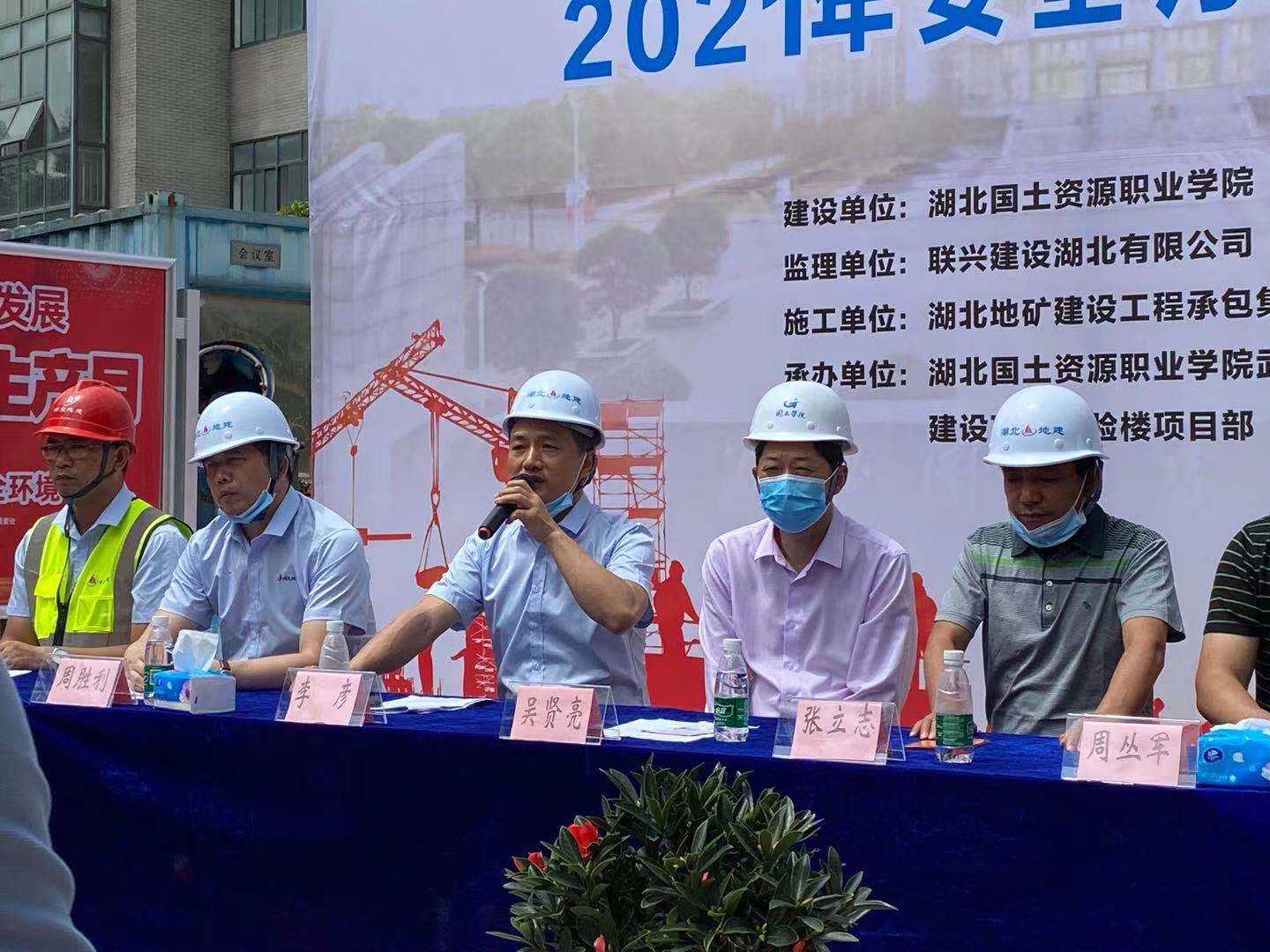 2021年6月4日上午,湖北地礦建設(shè)工程承包集團(tuán)有限公司在湖北國(guó)土資源職業(yè)學(xué)院武漢校區(qū)建設(shè)項(xiàng)目實(shí)驗(yàn)樓項(xiàng)目部舉辦了2021年“安全生產(chǎn)月”啟動(dòng)儀式。湖北省城市地質(zhì)工程院黨委副書(shū)記張立志,承包公司總經(jīng)理李彥,副總經(jīng)理周勝利,總經(jīng)理助理陳昊,實(shí)驗(yàn)樓項(xiàng)目建設(shè)單位、監(jiān)理單位相關(guān)領(lǐng)導(dǎo),公司安全生產(chǎn)部,實(shí)驗(yàn)樓項(xiàng)目部全體管理人員及工友代表等近百人在主會(huì)場(chǎng)參會(huì),承包公司各項(xiàng)目部通過(guò)視頻分會(huì)場(chǎng)參會(huì)。