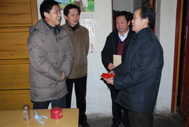 2008年1月24日,省地礦局副局長宋悅明同志在湖北地建工程院黨委書記譚林峰同志的陪同下,頂著凜冽的寒風(fēng),冒雪來到黃石基地管理處,對離退休老同志、困難職工和困難職工遺屬走訪慰問,并送去了黨的關(guān)懷和新年美好的祝福。