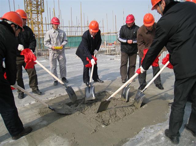 最后,大家一起為A、B座的主體澆筑了混凝土,為封頂畫(huà)上了圓滿(mǎn)的句號(hào)。