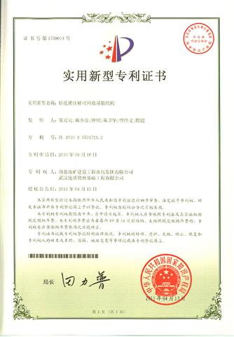 近日,從國家知識(shí)產(chǎn)權(quán)局公告獲悉,由湖北地礦建設(shè)工程承包集團(tuán)有限公司和武漢地質(zhì)勘察基礎(chǔ)工程有限公司聯(lián)合申報(bào)的“鉆孔灌注樁可回收吊筋結(jié)構(gòu)”技術(shù)被授予實(shí)用新型專利。 近年來,湖北地建集團(tuán)高度重視知識(shí)產(chǎn)權(quán)工作,積極實(shí)施知識(shí)產(chǎn)權(quán)戰(zhàn)略和品牌建設(shè)戰(zhàn)略,有效的提升了集團(tuán)知識(shí)產(chǎn)權(quán)的創(chuàng)造、應(yīng)用、保護(hù)和管理能力。