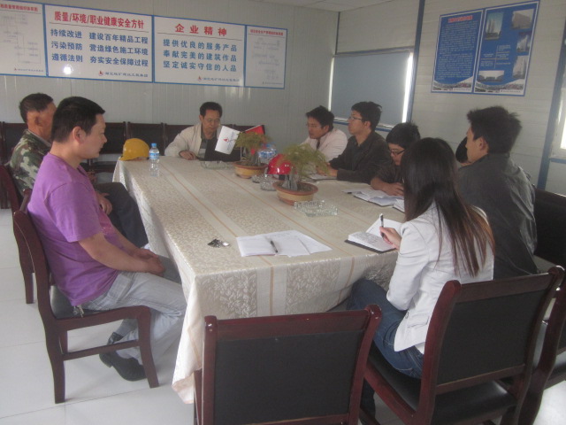 2011年4月28日上午8點,中楚公司黨支部書記張光發(fā)在蕪湖柏莊觀邸項目部召開政治工作會議。項目部全體管理人員和班組中的兩名黨員同志參加了會議。