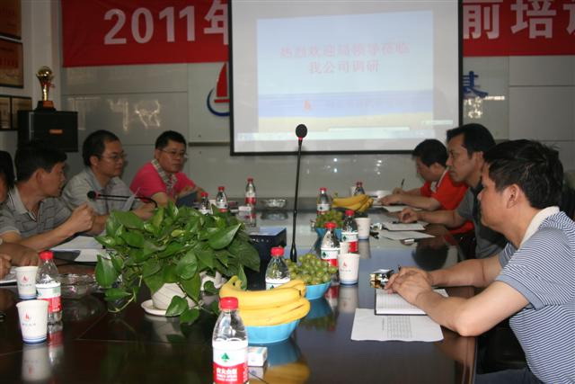 2011年8月4日上午,省地礦局副局長曾環(huán)宇、工程地質(zhì)處處長沈順照一行到武基公司調(diào)研。調(diào)研組認(rèn)真聽取了武基公司近幾年經(jīng)營發(fā)展情況及2011年1 -7月工程院下達工作目標(biāo)完成情況的匯報,詳細(xì)了解了武基公司人員編制和外協(xié)隊伍情況、管理機構(gòu)設(shè)置和分工情況、設(shè)備資產(chǎn)現(xiàn)狀和經(jīng)營市場細(xì)分情況。